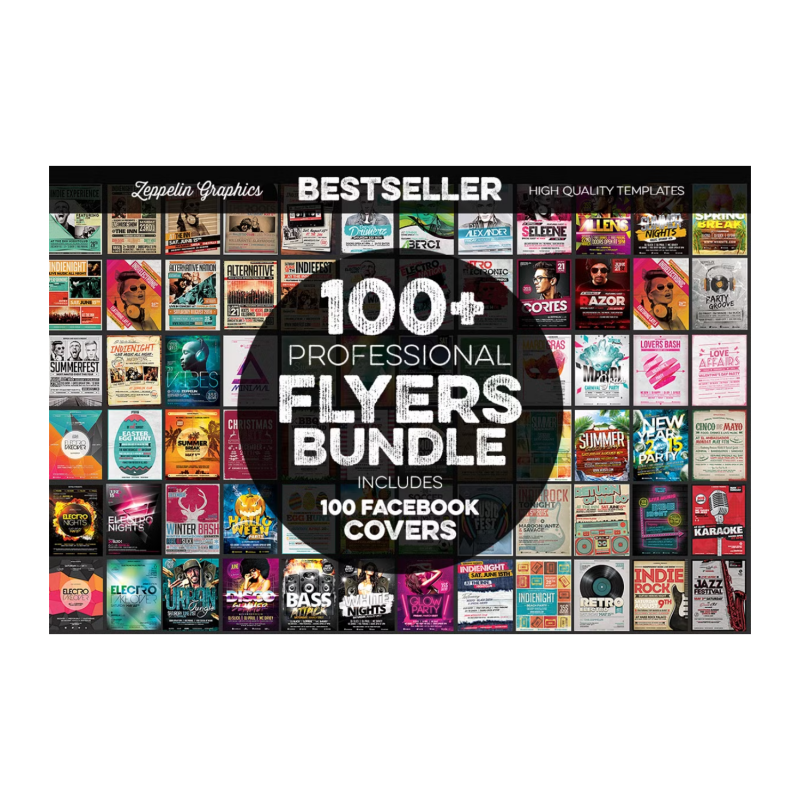 Inside you will find templates ranging from DJ electro events to barbecue or holiday events. So either you design flyers for indie festivals, christmas, or soccer championships then this is the bundle for you! With 82+ flyer designs all with matching facebook covers included and most templates with different color versions, you will find everything you need in your future flyer/poster projects.