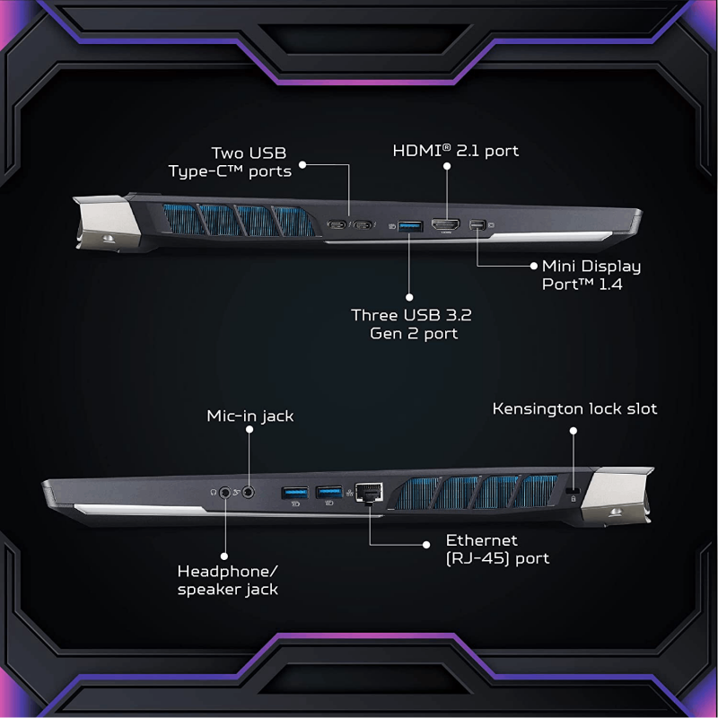 • Blazing-Fast Display: 43.9cm(17.3") display with IPS (In-Plane Switching) technology, Ultra HD 3840 x 2160, high-brightness (SDR mode 480 nits / HDR mode 1000 nits), high color gamut (DCI-P3 100%), Acer ComfyView LED-backlit TFT LCD, integrated Mini LED technology. Supporting frame rate 120Hz and HDR 1000 for gamers who demand the best visual experiences