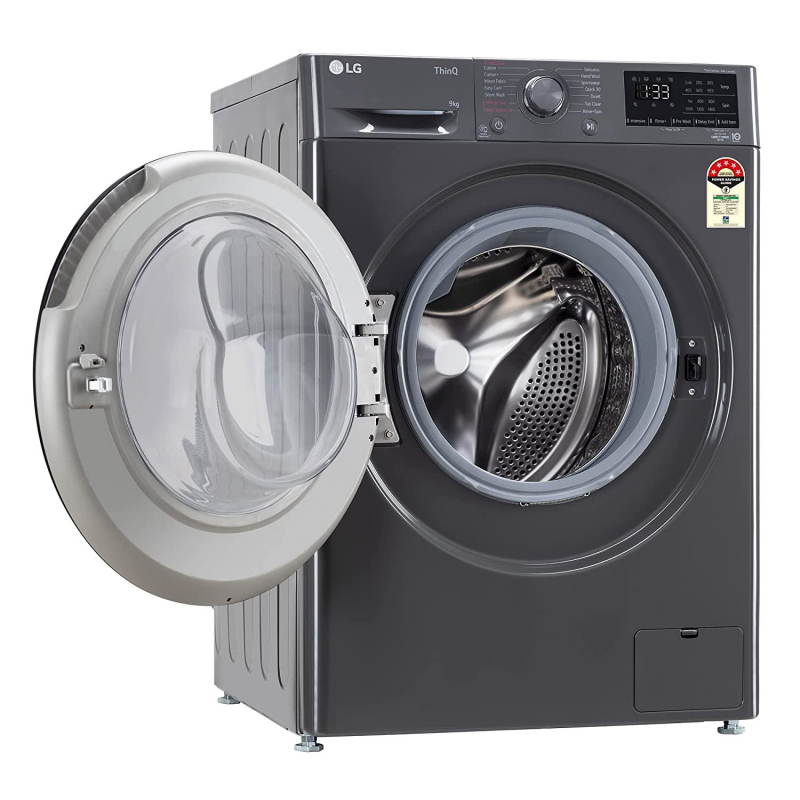 غسالة إل جي 9 كجم 5 نجوم انفرتر واي فاي تحميل أمامي أوتوماتيكية بالكامل مع سخان يحمل في ثناياه عوامل