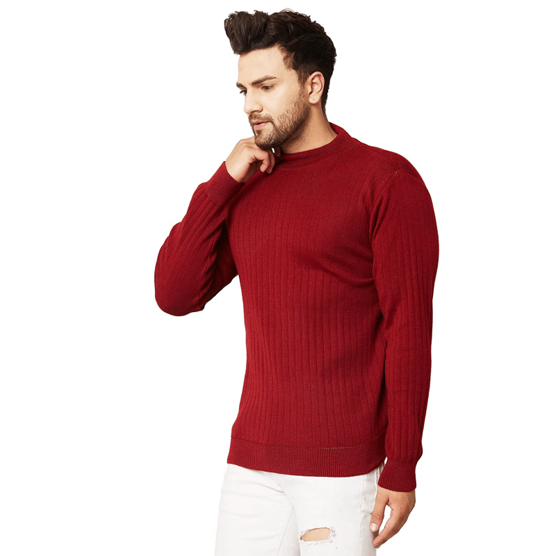 Men High Neck Full Sleeve Winter Woolen Sweater,Red