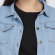 سترة الدنيم الصلبة الصلبة خفيفة الوزن ، لديها طوق انتشار ، 2 جيوب ، لديه زر إغلاق ، ثلاثة أرباع الأكمام ، حاشية مستقيمة ، بطانة قطنية.