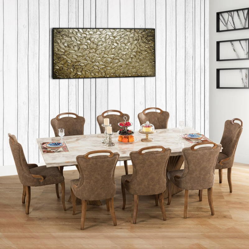 • Dimensions (In Centimeters): Table: H 75 x W 220 x D 110; Chair: H 97 x W 48 x D 48