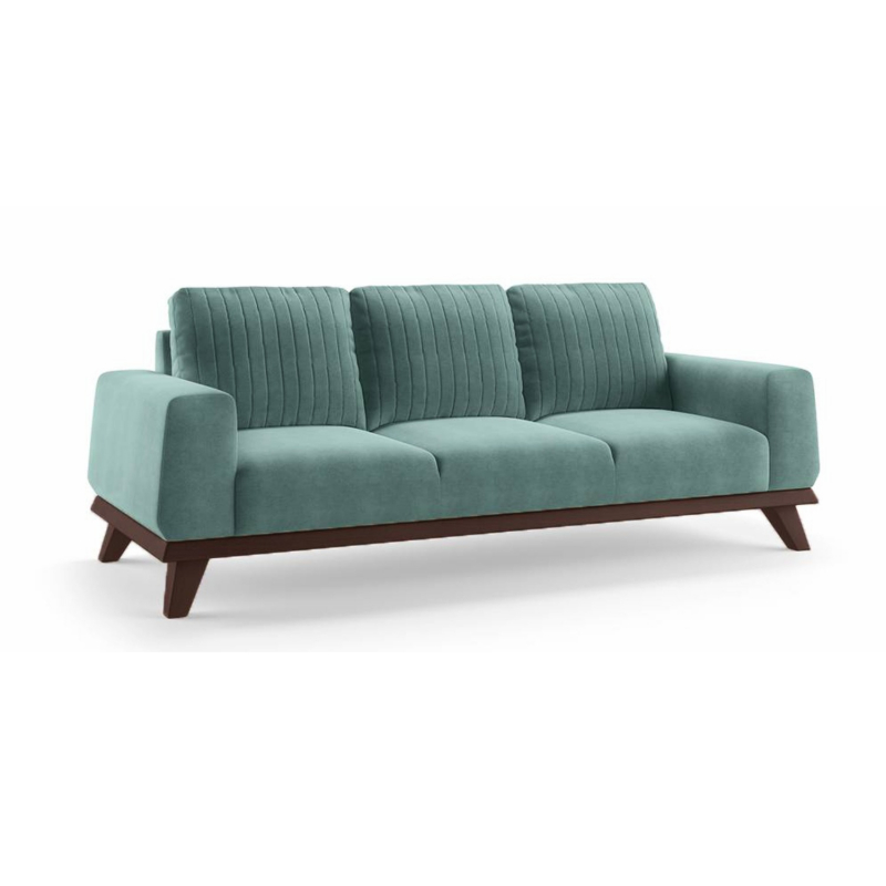 This sofa’s frame is made from seasoned solid wood with plywood boxing that undergoes a 3-step treatment for protection against borers and is kiln-dried for moisture control.