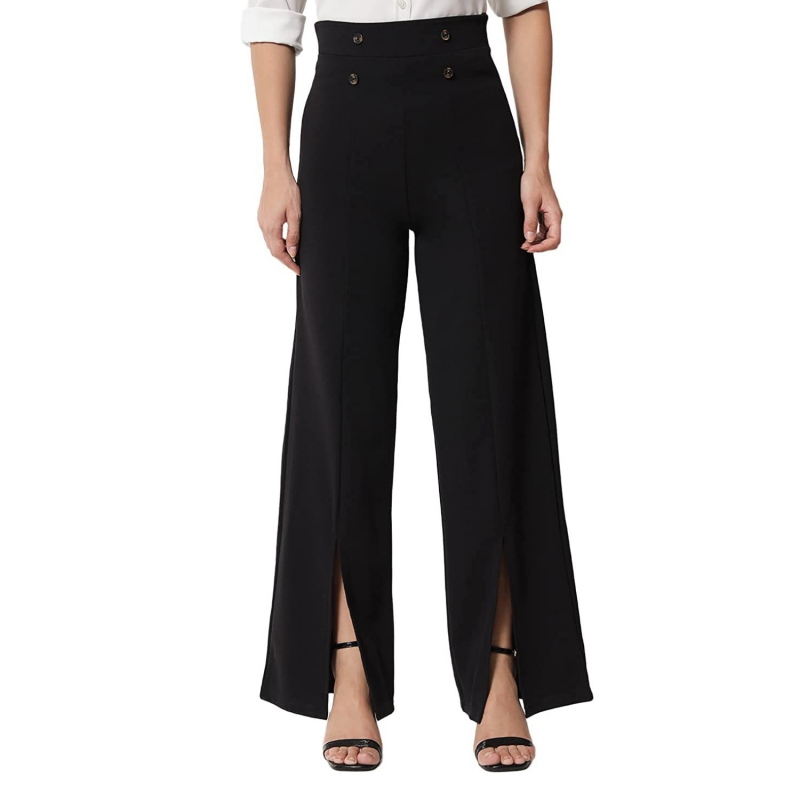 KOTTY Women Regular Length Jade Black Solid Trousers