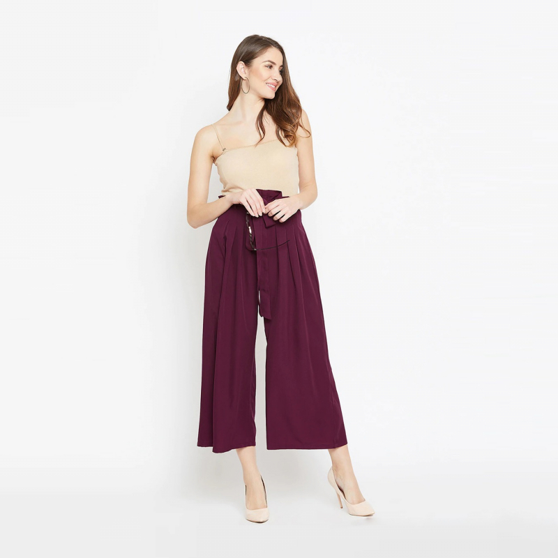 Women Paper-Bag Waist Culottes with Fabric Belt Trouser