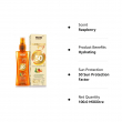 • A spray on sunscreen that provides broad spectrum Protection against UVA and UVB rays. It is infused with carrot seed and raspberry extract along with almond and avocado oils