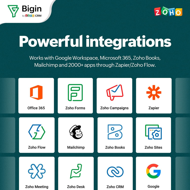 • Bigin is a pipeline-centric CRM solution, built for small businesses. The solution is user-friendly, packed with the right features, and most importantly, for the right price